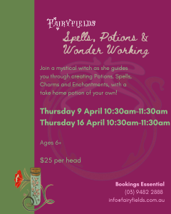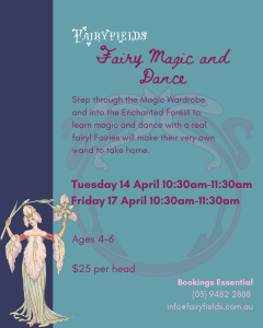 Instore Events Discover the magic of Fairyfields at one of our instore events, bookings are essential. School Holiday Events April 2026 Call the shop to secure your spot! Bookings and payment taken over the telephone!(03) 9482 2888